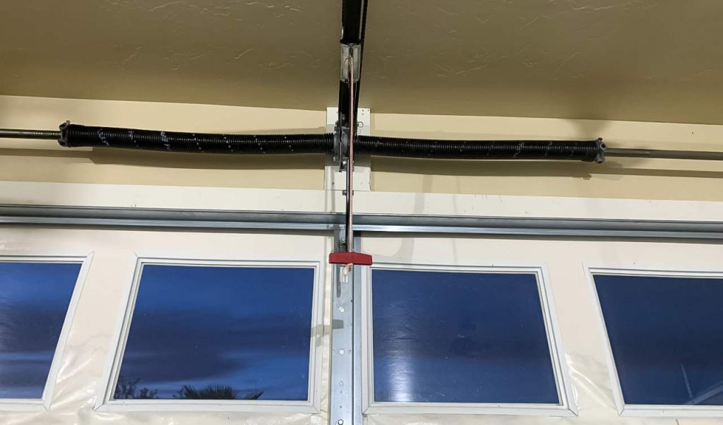 Look above your garage door. If the torsion spring has a 2–3 inch gap, that spring is broken.